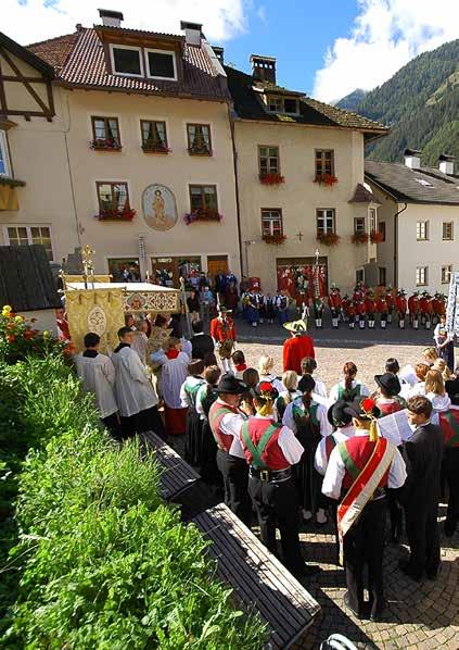 Monumenti e antichi masi, festività e mestieri dei tempi antichi qui vengono preservati e mantenuti con grande cura. Questi sono luoghi che affondano le loro radici nella tradizione, luoghi che infondono sicurezza e trasmettono un senso di autentica continuità. Questi sono anche luoghi dove la gente ama da sempre fare musica e suonare insieme; le note armoniose del corno alpino, della chitarra o dell'arpa infondono gioia di vivere, come i raggi del sole illuminano una mattina di maggio.