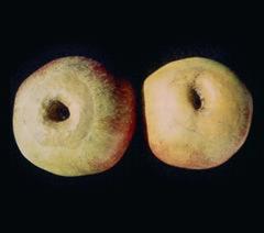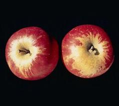 Die Fruchtberostungen äußern sich als Stielbucht- oder Kelchhöhlenberostung, Frostaugen, Frostringe, Rauhschaligkeit mit oft nachträglichen Rissen der Fruchtschale.
