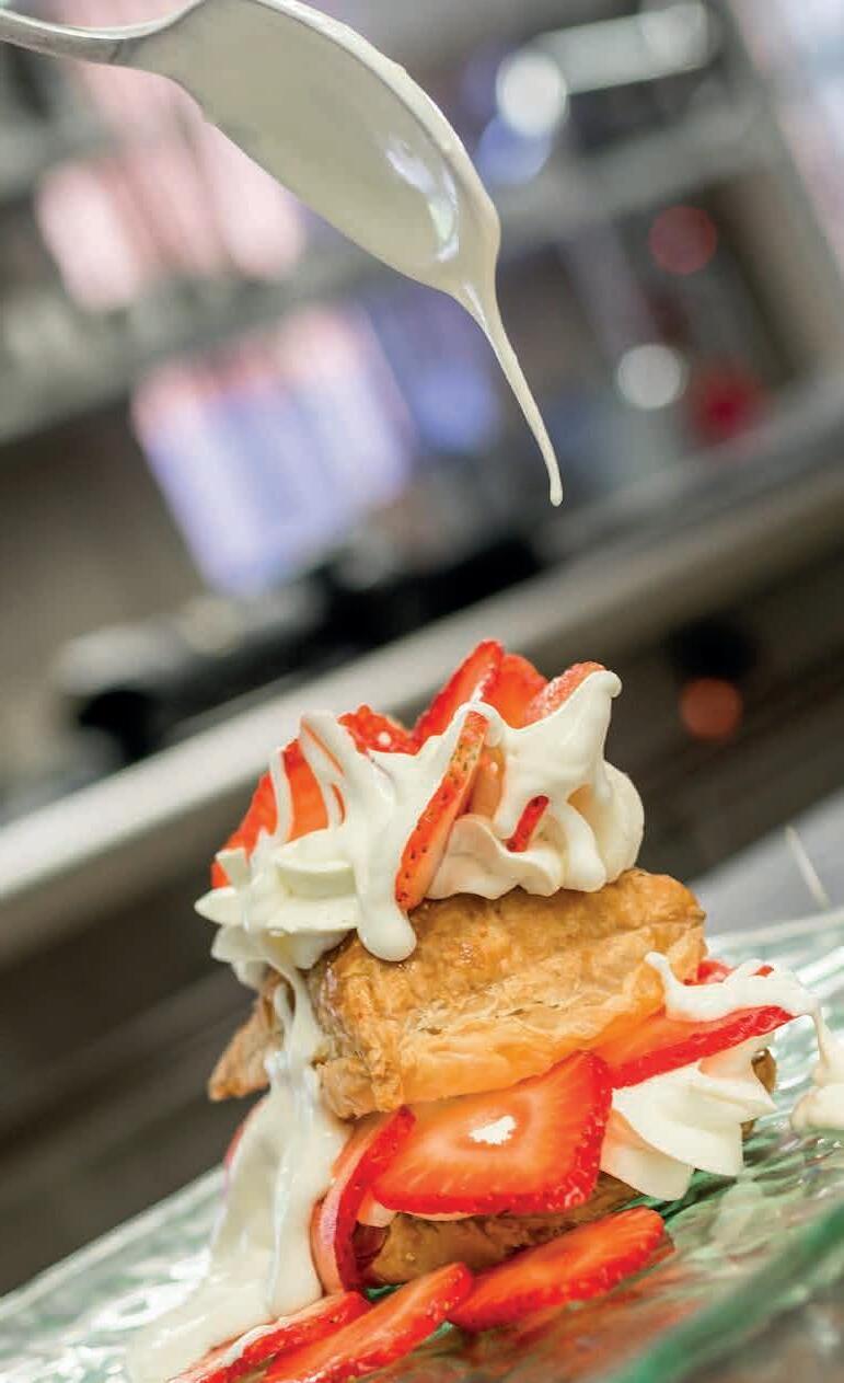 Gelato allo yoghurt, fragole frullate, panna montata
