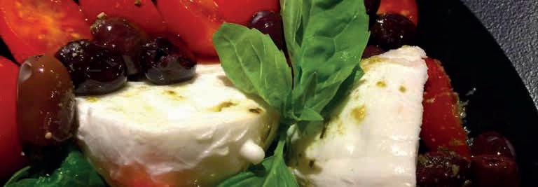Frische „Burrata“ Mozzarella mit Tomaten, Oliven und hausgemachtem Pesto „Burrata“ Mozzarella with tomatoes, olives and homemade pesto
