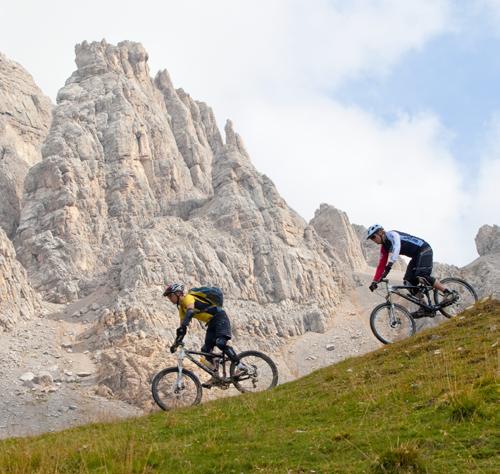 „Berge in Flammen“ heißt Luis Trenkers filmisches Meisterwerk über seine Erfahrungen im Gebirgskrieg. Doch auch wenn heute beim Anblick der grandiosen Felsbastionen der Dolomiten niemand an Krieg denken mag: Gerade Mountainbiker kommen