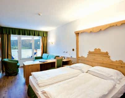 Le nuove camere Dolomia vista lago (ca. 33 mq) sono situate nel corpo principale dell’hotel e arredate in stile classico trentino, di cui l’elemento principale è il legno. La cura dei dettagli e l’atmosfera accogliente e confortevole grazie all’impiego di legno e materiali naturali caratterizzano le camere Dolomia, dotate di: