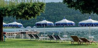 • Spiaggia attrezzata con ombrelloni e lettini in riva al lago;