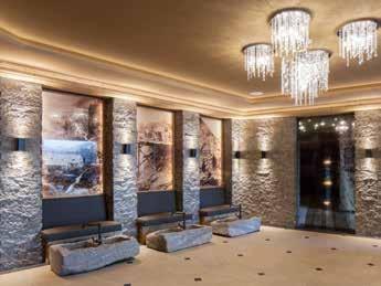 Il micascisto – una pietra speciale che affascina per la sua bellezza naturale. Troverete questo materiale antichissimo non solo nella vasca Kneipp, nella fontana di ghiaccio, nei lavandini della SPA, nelle camere Minera, nelle suites Lara e Jonas, ma in tutta l’area delle gallerie. Viene usata anche in cucina per mettere in risalto alcune pietanze servite proprio su questa pietra.