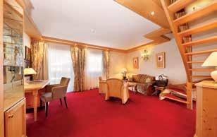 Suite maisonette a due piani, letto matrimoniale, divano con poltrone, TV-LCD su entrambi i piani, radio, cassaforte, scrivania, minibar, WiFi, telefono, balcone. Bagno con vasca idromassaggio, doppio lavabo, asciugacapelli, bidet, WC, doccia, termoarredo scaldasalviette, specchio cosmetico, WC di servizio separato. (La Suite Tobias è disponibile in 4 varianti!)