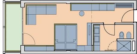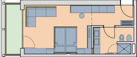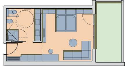 37 m2, in Wengé, Lärchenboden, großer Schiebetürschrank, Schreibtisch, Garderobe, Kofferbock, Minibar, Zimmersafe, Telefon, Internetanschluss, Schminkspiegel, ausziehbares Schlafsofa (160 x 200 cm), Badezimmer mit 2 Waschtischen, Badewanne, getrenntes Tages- WC mit Bidet & Waschbecken, Plasma TV-Gerät, große Terrasse zur Südseite (20 m²), exklusive Komfort-Liegen.