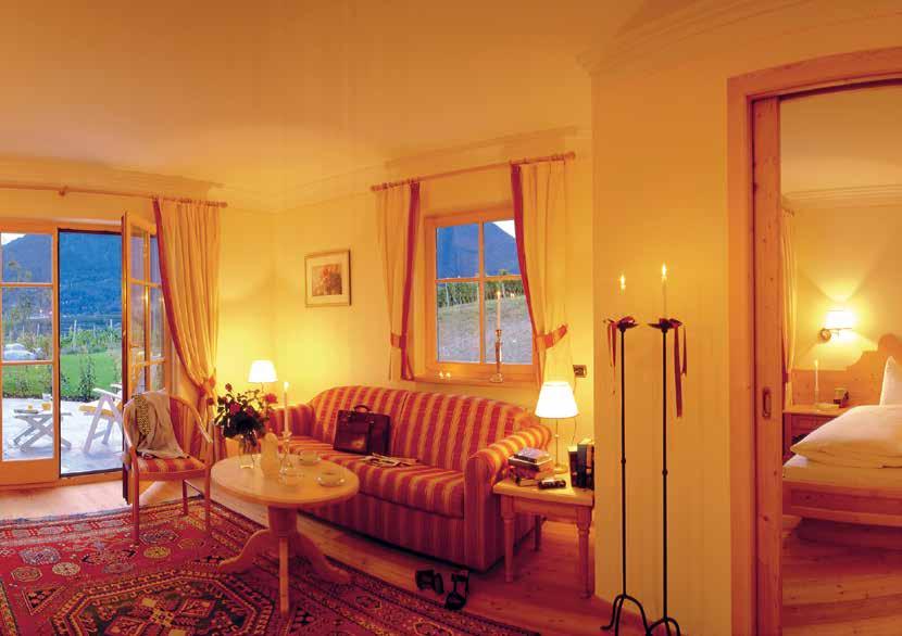 Komfortable Zimmer und großzügige Suiten mit einzigartigem Blick in die Weinberge und das reizvolle Eisacktal, laden ein zum Entspannen und Träumen.