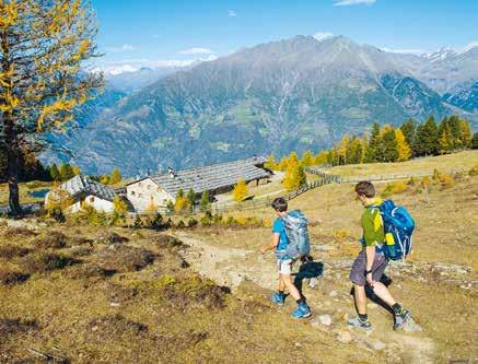 ... Wandern kann so vieles sein, aber zu allererst ist es gesund. Man kann langsam und schnell, steil und flach wandern, schlendern, spazieren, gehen, nordic walken, laufen, bergsteigen, klettern – das alles kann Wandern in Naturns sein. In Naturns stehen den Wanderern drei sehr kontrastreiche Landschaften für die Bewegung in der Natur zur Verfügung. Das Wandern in der von Apfelplantagen und dem milden, südländischen Klima des Meraner Landes geprägten Talsohle. Das Wandern in mittleren Höhen zwischen der Talsohle und einer Höhe von etwa 1.500 m. Und schließlich die Hochgebirgswelt über die Waldgrenze hinaus bis auf 3.000 m Höhe, zu den Gipfeln der Texelgruppe.