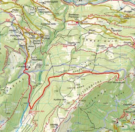 „Schwalbennest“ geht es leicht bergab bis zur Jausenstation. Nach dem „Maurbamhof“ erfolgt das letzte Stück des Abstiegs über eine schmale Teerstraße. Dem Schlossweg und der Feldgasse folgend, erreicht man schließlich wieder den Ausgangspunkt im Ortszentrum.
