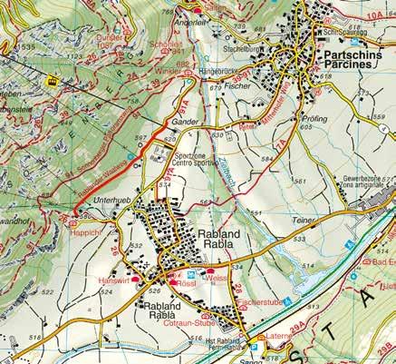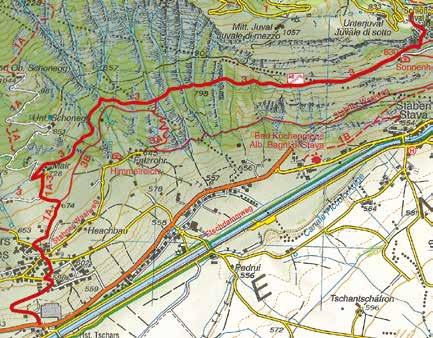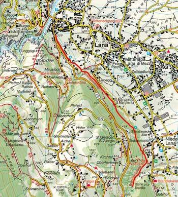 queren der Etschbrücke linker Hand der Tscharser Bahnhof. So gelangt man mit dem Linienbus oder der Vinschgerbahn bequem nach Naturns zurück.