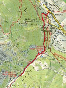 Diese Wanderbroschüre ersetzt keine Wanderkarte, welche bei jeder Wanderung unbedingt im Rucksack mit dabei sein sollte! Diese Broschüre wurde mit größtmöglicher Sorgfalt und besten Bemühungen erstellt. Sollten sich dennoch Fehler eingeschlichen haben, bitten wir dies zu entschuldigen und sind für Hinweise und Verbesserungsvorschläge an info@naturns.it oder tel. +39 0473/666077 sehr dankbar. Der Tourismusverein Naturns übernimmt als Herausgeber keine Garantie für die Aktualität und Vollständigkeit der Daten. Änderungen und Irrtümer vorbehalten.