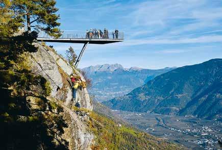 Die Aussichtsplattform am Gsindboden ermöglicht einen wunderbaren Ausblick über die Obst- und Weinberge im Tale, die Bergbauernhöfe am Sonnenberg und bis hinauf in die Gletscherwelt des hinteren Schnalstales. Schautafeln informieren die Wanderer über die Kulturgeschichte des vorderen Vinschgaus, den Fund des „Ötzi“ und das Leben zwischen Weinbergen, Apfelgärten und ewigem Eis.