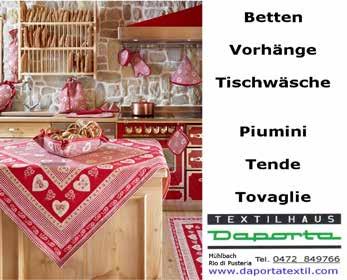 Tel. +39 0472 886 048 | Fax +39 0472 849 849 info@gitschberg-jochtal.com www.gitschberg-jochtal.com info@riopusteria.it | www.riopusteria.it