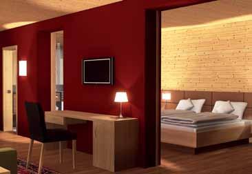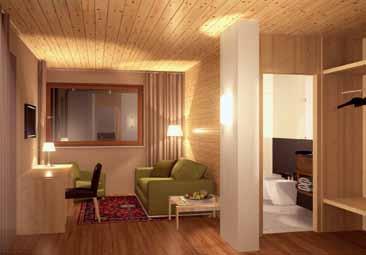 • Individuell gestaltete Zimmer und Suiten mit Böden, Decken, Wänden aus naturbelassenem Holz