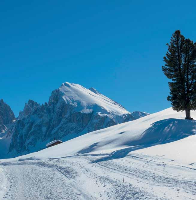 A unique paradise opens out at the healthy 1,850 m altitude – shrouded in a white coating in winter. The hotel is located right by the ski lifts, pistes, crosscountry trails and winter footpaths. Explore the SELLARONDA – THE ski tour in the Dolomites with 40 km of ski routes on offer.