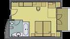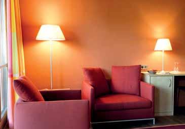 Individually designed rooms from 40 m² with bedroom and spacious living room, with glass bathroom, bath tub and shower and separate WC and bidet. With balcony and garden views. Mini-bar with mineral water and mountain water.