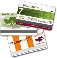 Mobilcard: Die Mobilcard ist Ihr „Passepartout“. Ein einziges PauschalpreisTicket, mit dem Sie alle öffentlichen Bus-und regionalen Bahnlinien in ganz Südtirol unbegrenzt nutzen können. Es gibt sie als 1Tageskarte oder für 3 bzw. 7 aufeinander folgende Tage.