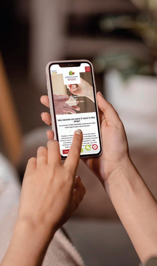 Concetto e realizzazione: VPS - Associazione Affittacamere – Appartamenti Turistici Alto Adige Grafik . Grafica: Judith Winkler, Meran/o – www.juwin.com Foto/text . testi: www.suedtirol.info; VPS - Archiv; A. Schwarz; IDM – Südtirol: M. Kottersteger, A. Moling, B. Pfitscher, H. Wisthaler, A. Filz, D. Geiger, M. Lafogler, M. Ferrigato, A. Schwarz, T. Monsorno, T. Kaser, P. von Felbert, A. Mierswa, M. Cherubino, S. Schütz, F. Blickle, D. Geiger, C. Zahn, Studio Mierswa-Kluska, Th. Grüner, F. Leitner, G. Pichler, H. Heckmair A. Marini; unsplash - xan-griffin, raychan, jamie-street; Verkehrsamt Bozen E. Biscardi, Fondazione Museion S. Buono; Südtiroler Weinstraße H. Rier; Ferienregion Obervinschgau – Nadja Anstein, B. Pfitscher; Ahrntal - M. Kottersteger, H. Wisthaler; Eggental Tourismus Gen.: H. Rier; Brixen Tourismus: M. Kottersteger; Villnöss Tourismus Gen. D. Denger; Seiser Alm Marketing: H. Rier; valgardena.it: S. Stiphout; Bruneck Kronplatz Tourismus: H. Wisthaler, Tourismusgenossenschaft Sterzing Pfitsch Freienfeld