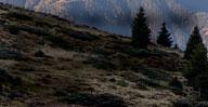 Von Lüsen kurvt eine enge Fahrstraße über Flitt hinauf zum Startpunkt am obersten Parkplatz Schwaiger Böden (1.730 m) knapp unterhalb der Lüsner Alm 1 . Kurz dahinter zweigt Weg 2 rechts hinauf durch Wald, trifft wieder auf den Alm-Zufahrtsweg und folgt diesem nach rechts entlang der Hangkante oberhalb des Karner Bachs, vorbei an Genaider- und Schneider-Fall-Alm. Dann setzt sich Weg 2 rechts hinter einem Gatter als Pfad zur Astalm fort. Links leicht bergan ist das Jakobstöckl 2 nicht weit. Weg 10 unterquert wenig später die Stromleitung, steigt nordwestwärts Richtung Grünfelder Alm an und zieht rechts hinauf zum Hörschwanger Kreuz auf dem Campill 3 (2.190 m). Weg 10 A Richtung Kreuzwiesenhütte