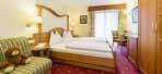 Doppelzimmer mit Südbalkon und Dolomitenblick, mit Dusche/WC, Bidet, Flat-TV, W-LAN Zugang, Safe, Haarfön, Kosmetikspiegel, Telefon, flauschiger Bademantel.