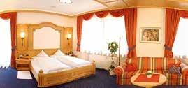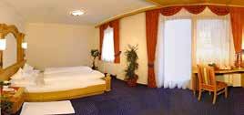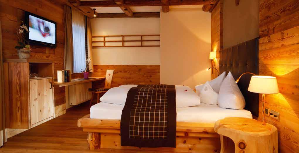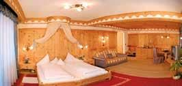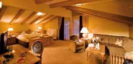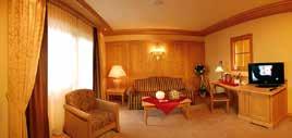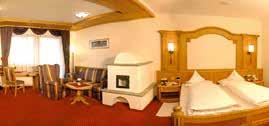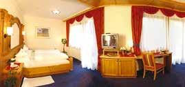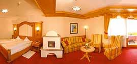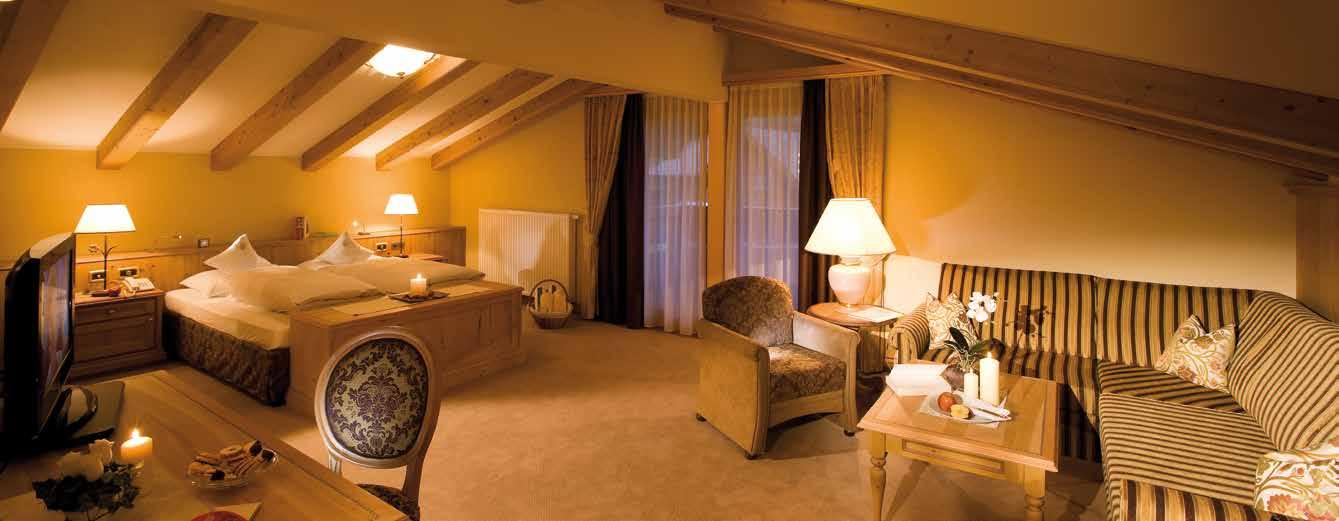 Letto a baldacchino, divano con 2 poltrone, stufa contadina, minibar, cassaforte, TV-LCD, radio, telefono, wireless-internet, scrivania e terrazza. Grande bagno (ca. 20 m2) con TV e soffitto stellato. Piccola SPA interna: vasca idromassaggio per due persone, cabina a raggi infrarossi per due persone (NOVITÁ). Doppio lavabo, specchio cosmetico, bidet, asciugacapelli, WC, doccia, asciuga-asciugamani, WC di servizio separato.