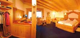 Suite per famiglie (da 3 pers.). Con occupazione di solo 2 persone, verrà applicato un supplemento di E 15,00 al giorno/ suite. Letto matrimoniale, divano con poltrone, ulteriore camera da letto separata per 2 persone, stufa contadina, TV-LCD, radio, cassaforte, scrivania, minibar, telefono, wireless-internet, balcone. Vasca idromassaggio, doppio lavabo, asciugacapelli, bidet, WC, doccia, asciuga-asciugamani, specchio cosmetico, WC di servizio separato, accesso al balcone della torre. NOVITÁ: soffitto stellato in camera da letto.