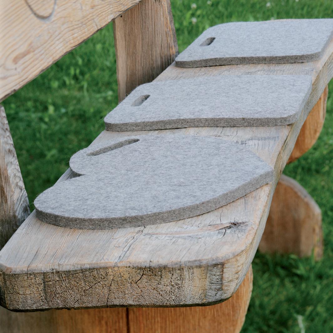 I cuscini decorativi e i copripanca in feltro Haunold® sono comodi e al contempo robusti e pratici da pulire. Il feltro naturale o re il massimo della comodità sia in giardino che in casa e persino durante le escursioni.