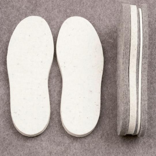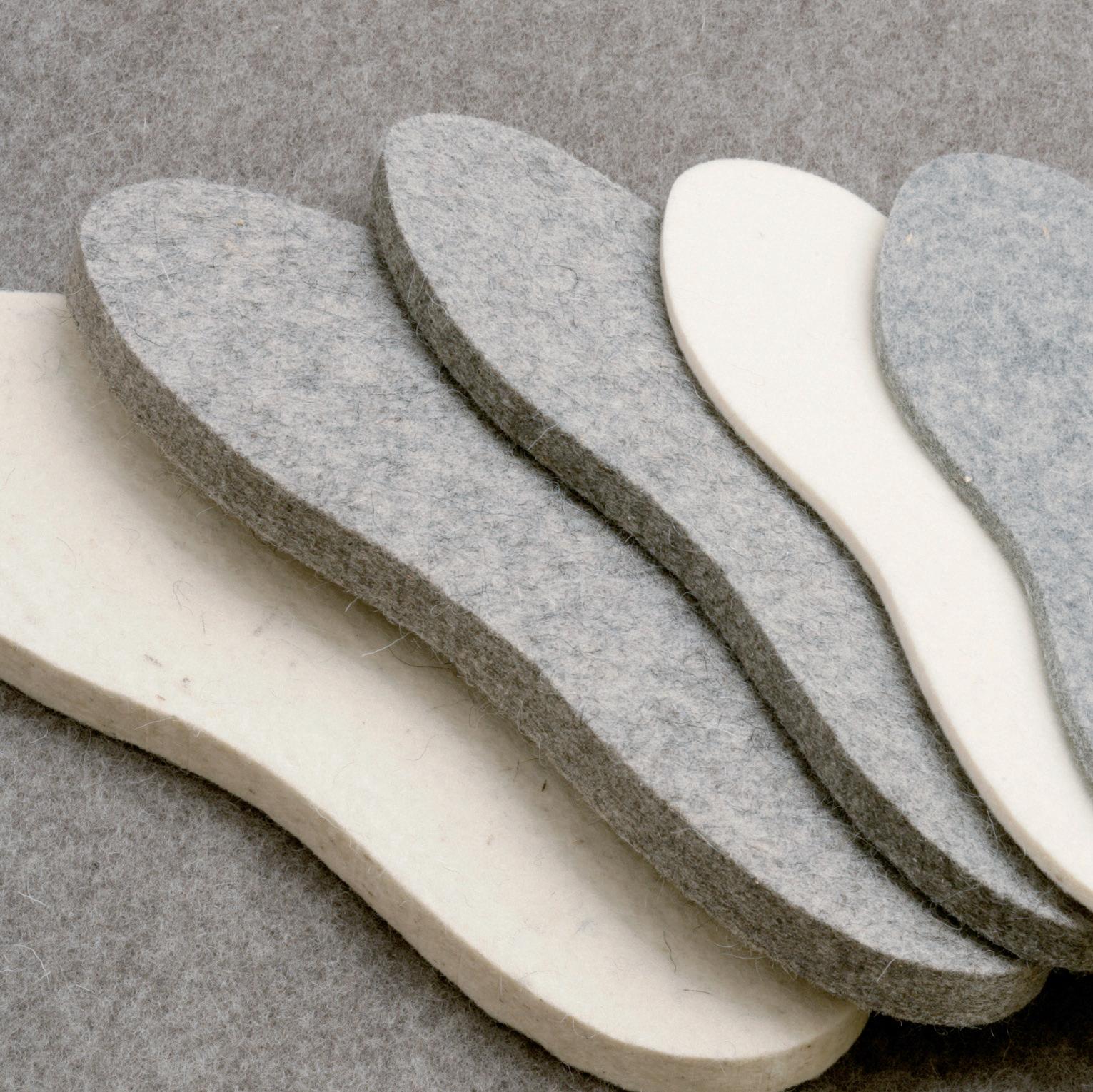 Wärmende Einlegesohlen für Wander-, Arbeits- oder Straßenschuhe sowie Filzsohlen für Ihre selbstgemachten Panto eln: damit gehen Sie luftig und angenehm weich! Auch extradick erhältlich.