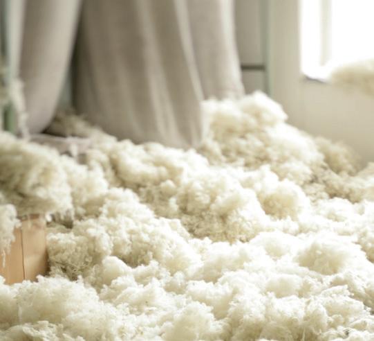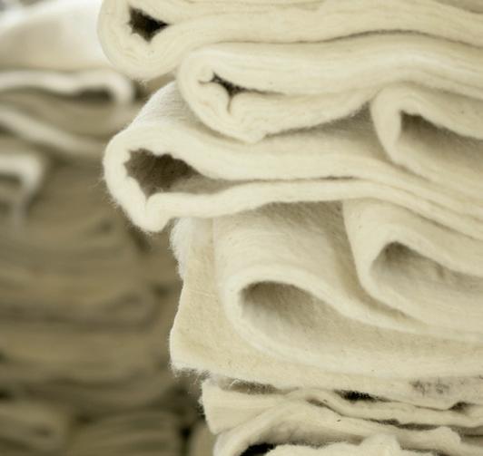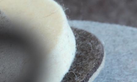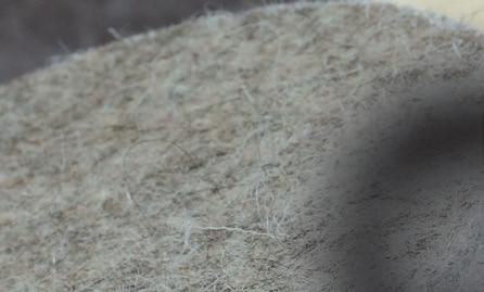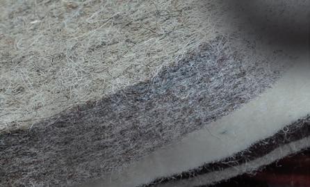 Le bre vergini della lana naturale vengono cardate e intrecciate con l’ausilio di umidità, calore e movimento no a dar vita a una super cie tessile.