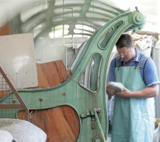 La successiva battitura nel cosiddetto follone a martelli le conferisce una maggiore resistenza, trasformandola in autentico feltro!