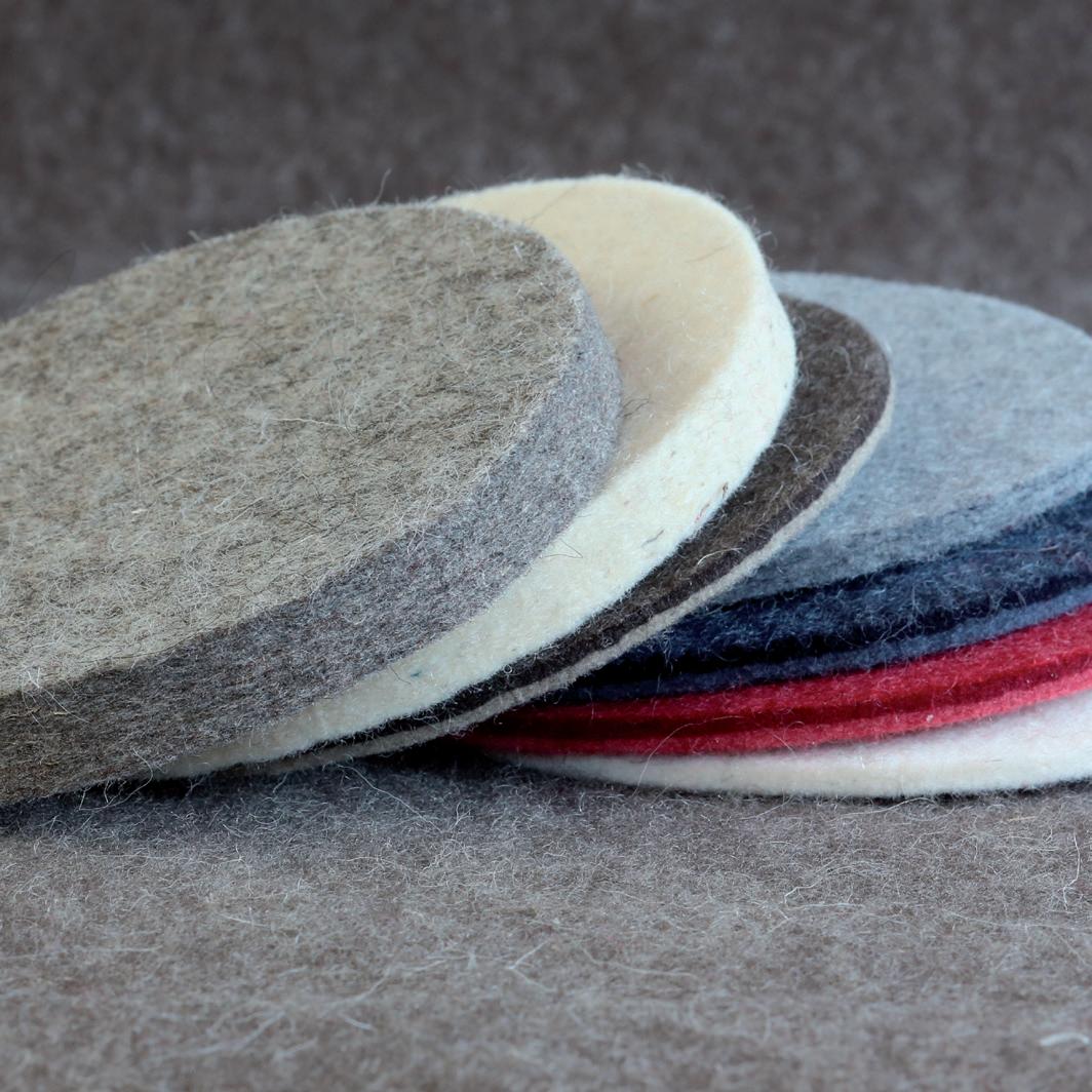 Ausschließlich aus reiner Schaf-Schurwolle fertigt die Familie Zacher in Innichen ihre bewährten Walk lze. Nach alter Hutmachertradition entstehen daraus die handgeformten Haunold® Filzpanto eln, aber auch Stanzungen wie Sitzkissen, Sohlen und Wohnaccessoires.