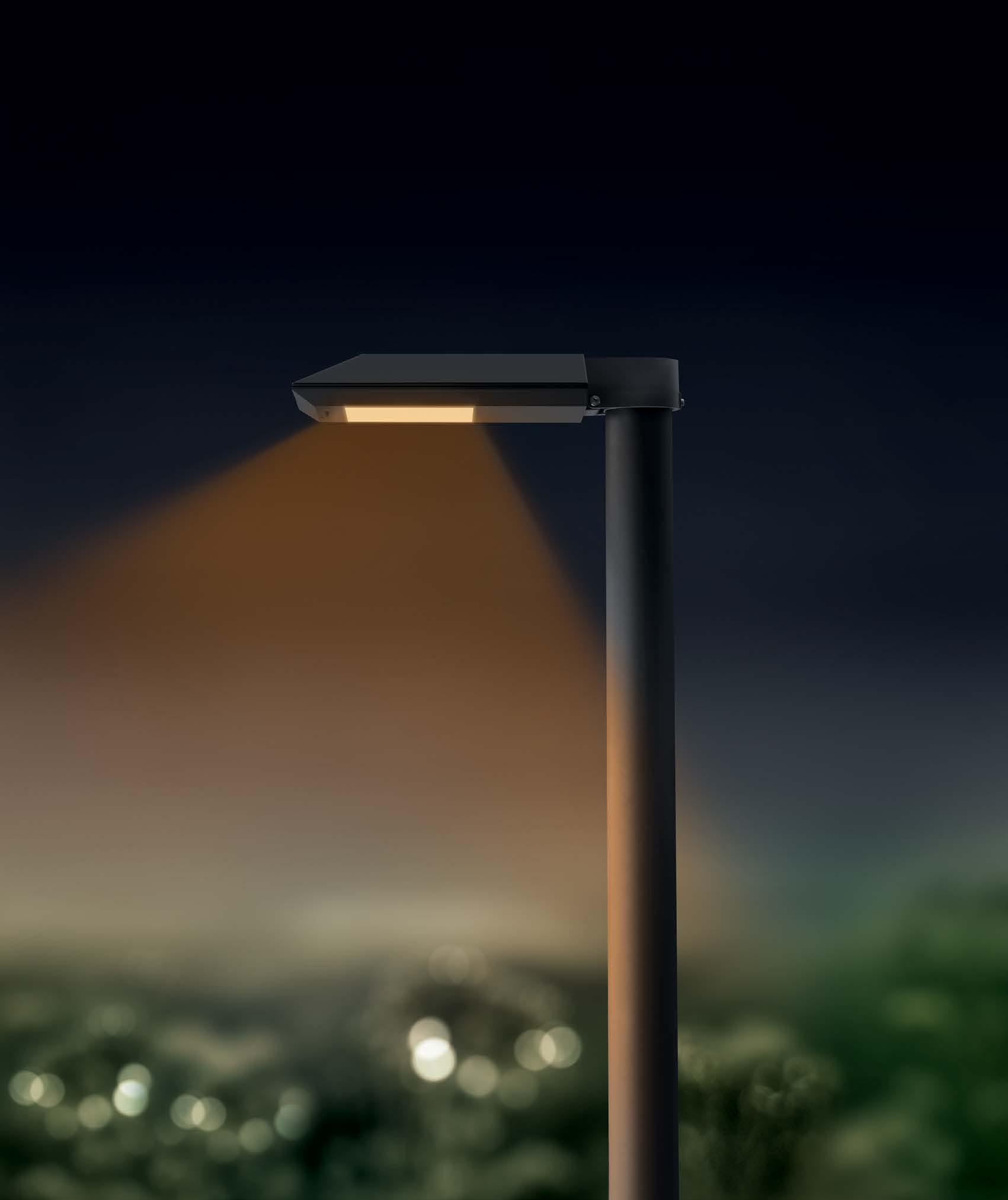 BEGA pole-top luminaires with BugSaver® technology protect nocturnal fauna by reducing the color temperature from 3000 Kelvin to an amber color around 1800 Kelvin, which reduces the light attractive effect. The color temperature and output can be controlled dynamically. bega.com/bugsaver