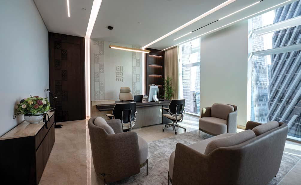 Situated on Level 36 of Emirates Towers, the 1,105-square-metre office unfolds as a continuous sequence of spaces rather than a collection of rooms.