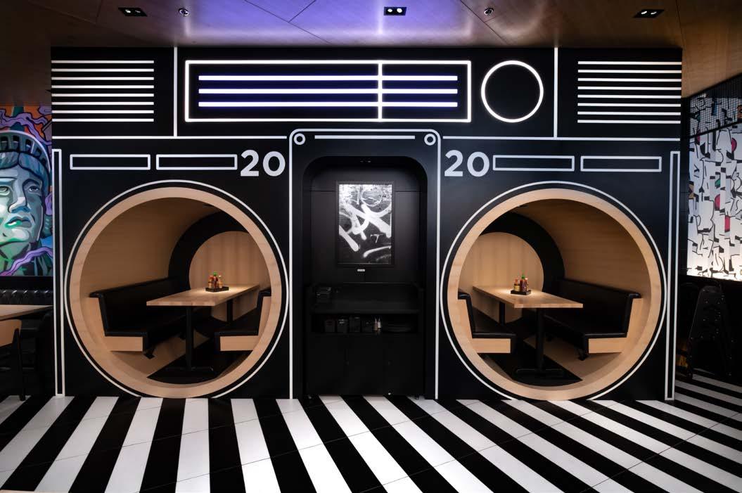 from the inside out. The perfect balance between food and art must be real, organic, and make sense. At Black Tap the balance manifests itself in one-of-a-kind food that is familiar and fun –cue our award-winning burgers and CrazyShake® milkshakes that take the nostalgic New York City diner vibes to the next level – with a side of one-of-a-kind art that gives off those same feelings of nostalgia and excitement. Design is and continues to be such an important part of our brand, it allows Black Tap to differentiate itself from its competitors by crafting an experience for guests that goes and above and beyond the typical dining experience. Just picture it: 80’s and 90’s hip-hop and pop music, custom street art, and a carefully curated menu taking the classics we love to the next level.