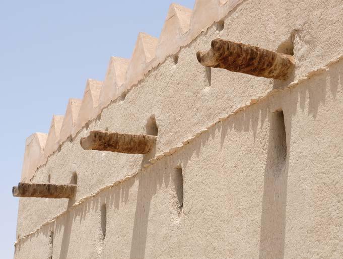 more recent door thresholds are limestone. Both the sandstone and limestone read as a cohesive whole but have subtle variations in colour and texture. As a place of such regional significance, the fort requires simplicity of landscape design to support it: the buildings and existing structures remain as the key moment. The landscape acts as the supporting base for an authentic visitor experience. Ground-up developments, on the other hand, such as the Natural History Museum currently under construction in Abu Dhabi, allow for greater design expression. Because the historical drivers of the site are less constrained, there is more room for new dynamic and interesting interventions within a space. Collaborating with exhibition and visitor experience designers is an exciting process >>>