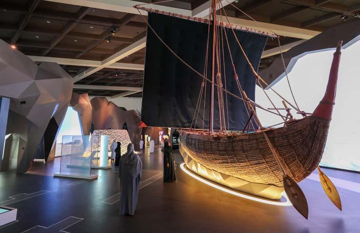 object displays to spectacular effect. A tactile object or artefact introduces the theme of each space, forming a trail running through the core of the museum. Audio and tactile elements are integrated at every stage to make sure that all visitors are able to engage with the content, be it the jaw of the animal of Omantherium, a primitive elephant that lived 35 million years ago, or a scaled model of the Arabian Gulf Cup.