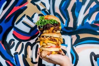 of care in picking the right artist for each spot. We’ve worked with artist Fumero at our OG Black Tap Soho location and also worked with him at Black Tap Vegas where he created four custom murlas throughout the space, including a very inconic Vegas take on the four cace cards. For Black Tap 35th Street we tapped twins How and Nosm. They have done work all over the world and have played a significant part in NYC arts culture. Black Tap Anaheim features murals by Orange County based artist Jason Woodside. He’s a link between NYC and Southern California and his vision felt perfectly aligned for Black Tap at the Downtown Disney District. Outside of the murals, we design each restaurant to fit into its surroundings and community, while keeping true to our DNA, so it was important to have outdoor space in Southern California, to go over the top with the neon at Black Tap Vegas and to take advantage of all the natural daylight at our Singapore location at Marina Bay Sands. Just recently we collaborated with artist Kenji Chai for our new location in Malaysia as he’s spent time in NYC and knows the ins and out of Kuala Lumpur. The hope is that each >>>