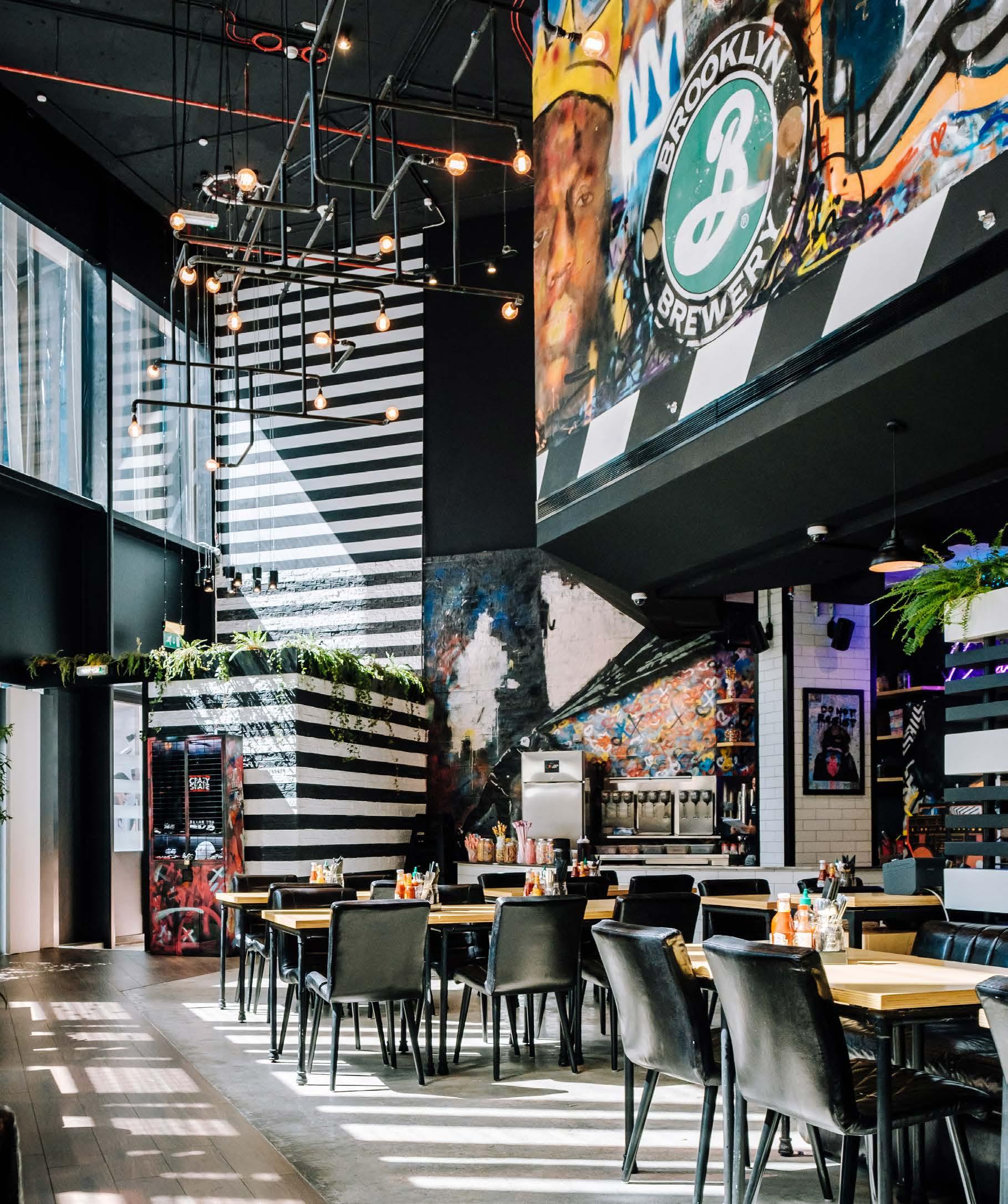 When developing the full design plan for each location, we mix up our Soho roots with the energy and spirit of the city or region we were entering to create something that is completely unique yet always clearly Black Tap. We took a lot of our visual inspiration from the iconic collaborations between Andy Warhol and Jean Michel Basquiat, a little pop and hiphop that is familiar yet with a little flare. We work with artists to create original murals in each location, and we take a lot