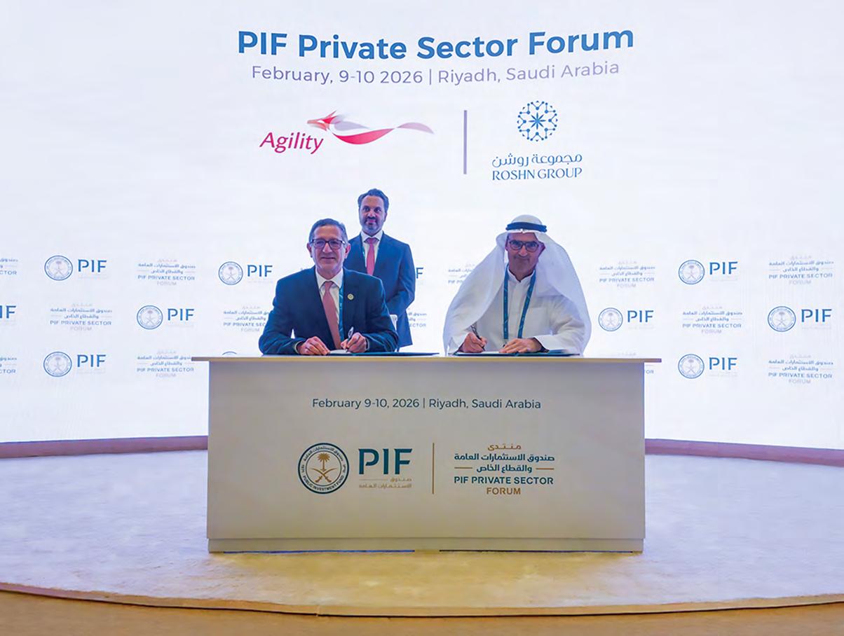 The agreement was signed on the sidelines of the PIF Private Sector Forum in Riyadh by Sabah Barakat, AGCEO of ROSHN Group, and Tarek Sultan, Chairman of Agility.