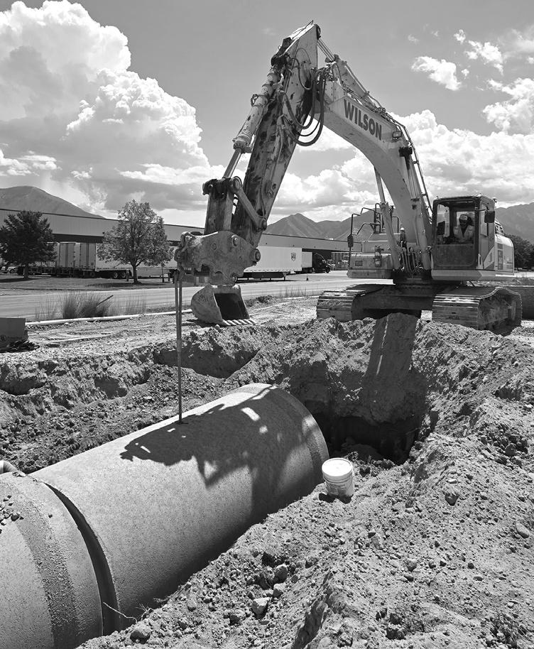 “During this phase of the project, we’ve needed several hundred yards of gravel, which has been installed around the huge concrete sewer pipes. The pipes are 6 ft. tall on the inside and require large equipment and careful operators to install correctly and safely.”