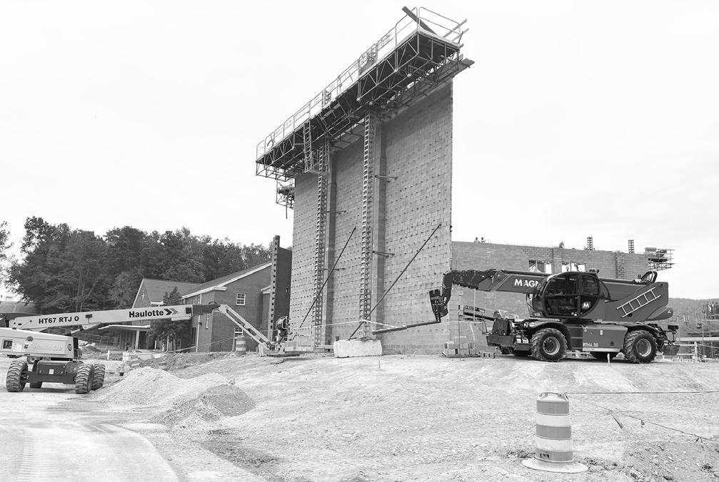 For the performance hall, “This is primarily a masonry structure, with steel supporting the floor and balcony seating and also spanning the roof,” said Brown. “It will have a brick, precast, manufactured stone and Eifs veneer.”