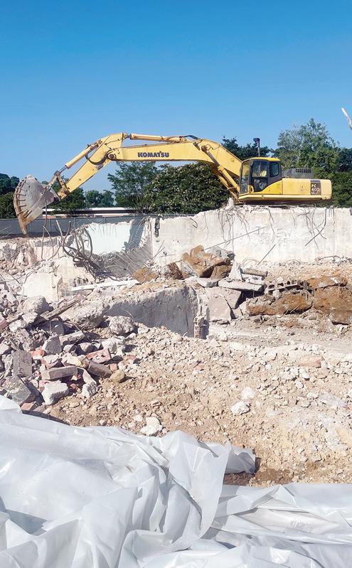 The buildings are being brought down by heavy machinery, with a variety of equipment required to complete the work.