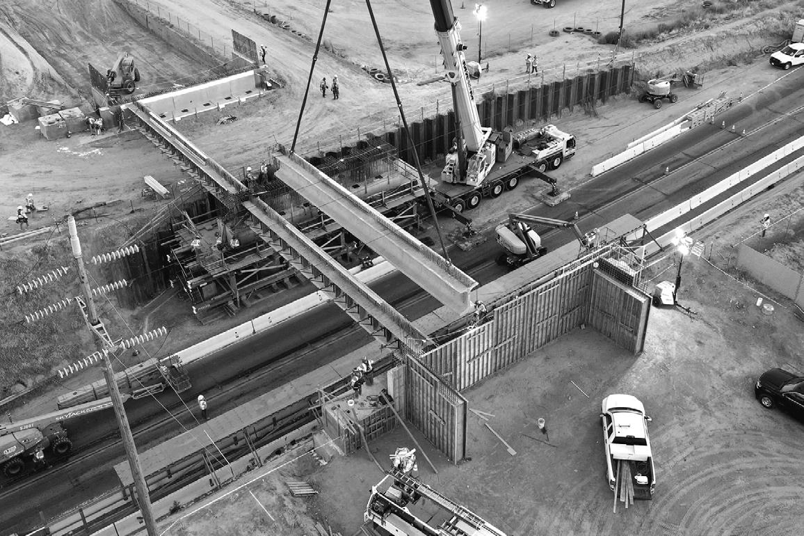 “Planning starts months in advance, beginning with the design, getting the fabricator and lots of coordination with third parties for road closure permits and allowing time in the schedule for the unforeseen circumstances like weather delays, breakdown in equipment,” added Blancas. “Some of the girders were so long that CHP had to guide the girders, which required five to sixweeks notice and a planned route agreed with the trucking companies. The girders of Wasco need 50 minutes. Around 15 minutes to rig, around five minutes to fly the girder and set, 20 minutes for bracing and 10 minutes to disconnect the rigging. For McCombs and Merced, the average was around 75 minutes.”