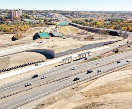 An aerial photo from west of the Interstate 25/U.S. 50B Interchange construction site in Pueblo