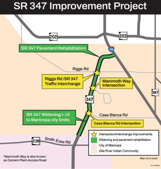 The project will improve a 15-mi. section of SR 347 between Interstate 10 and the city of Maricopa. This project corridor runs through Maricopa and Pinal counties and is primarily located within the Gila River Indian Community.
