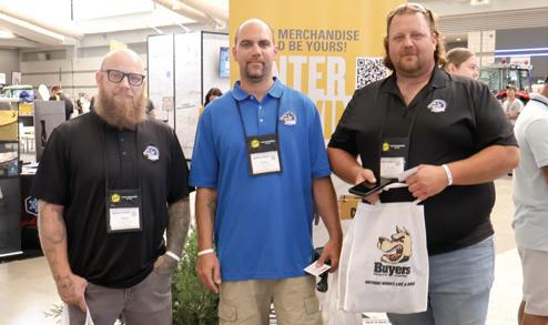 Avant’s Matt Hondel (L) and Mark Alcorn talk with attendees about their compact wheel loader with rotator broom and drop spreader.