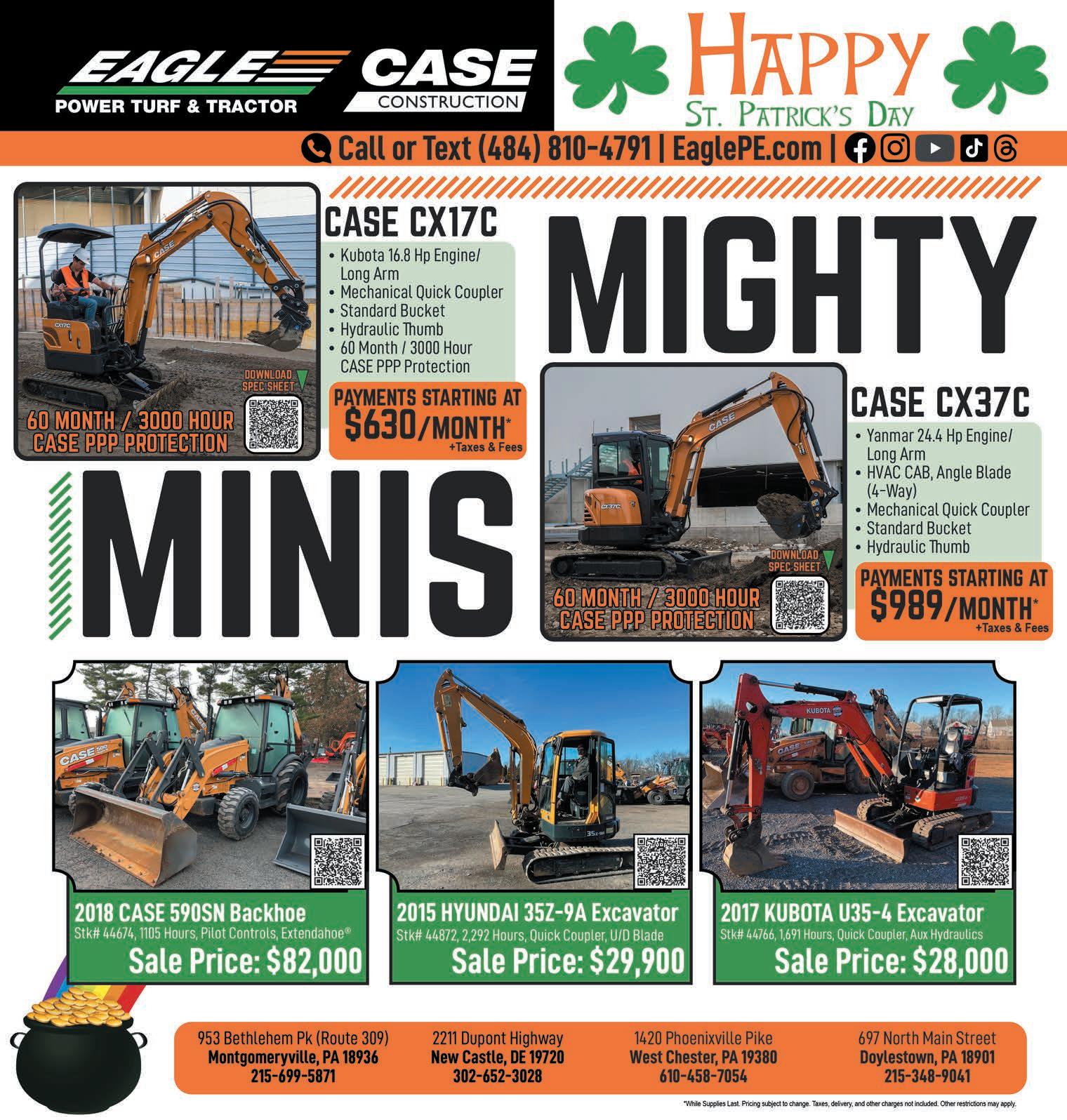 s/n NDJ20815 • `18 CAT 325F LCR, s/n NDJ20246 • `07 CAT 321C LCR, s/n MCF01146 • `13 CAT 320E LRR, s/n TFX00662 • `08 CAT 320D LRR, s/n XCK00434 • `14 CAT 314E LCR, s/n ZJT00530 • `13 CAT 314E LCR, s/n ZJT00416 • `11 CAT 314D LCR, s/n SSZ00403 • `06 CAT 314C LCR, s/n PCA01225 • KOMATSU PC228UU, s/n 10587 • `01 KOMATSU PC128UU-2, s/n 5515 • `92 KOMATSU PC120, s/n A40083 • `06 KOBELCO ED150-1E Blade Runner, s/n YL05-00752 • `14 TAKEUCHI TB180FR Mini, s/n 178401295 • `08 TAKEUCHI TB180FR Mini, s/n 17830932 • `11 TAKEUCHI TB180FR Mini, s/n 178400651 • `06 TAKEUCHI TB180FR Mini, s/n 17830242 • `05 TAKEUCHI TB53FR Mini, s/n 15811099 • `17 YANMAR VI055-6A Mini, s/n YMRV1055KGAJ61237 • `17 YANMAR VI080-1A Mini, s/n AF461