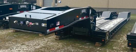Rogers 55 ton Gentle Riser, No-Foot Neck, 25' deck, adjustable width bi-fold front ramps, deep well pocket in deck with inserts & planks on grade, 275's on aluminum outers, extra lights, Strobes in rear, mini strobes on sides, Air Lift 3rd, hangers & supply for optional 4th axle, Black paint.....................IN STOCK!
