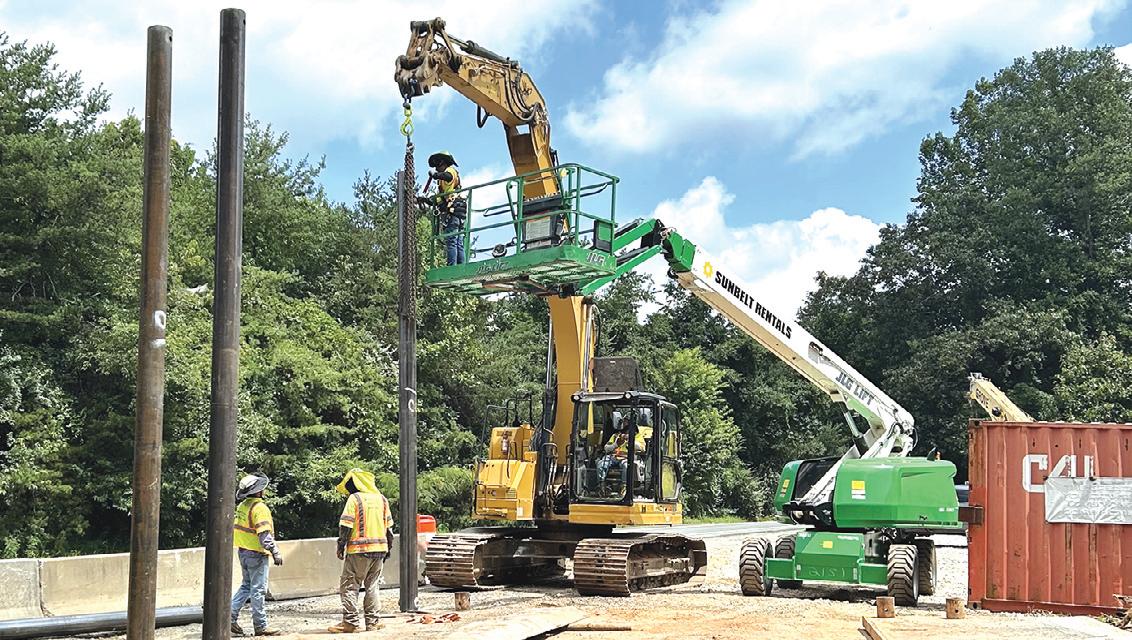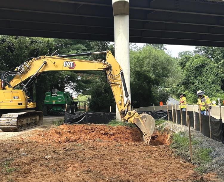 using a shared-use path adjacent to the Parkway. Planners also had to account for the Norfolk Southern Railroad that runs below the Parkway. The team is meeting this challenge by building retaining walls wrapping both sides of the Parkway at the bridge that will be widened over the railway. The walls will be up to 30 ft. tall and will be built