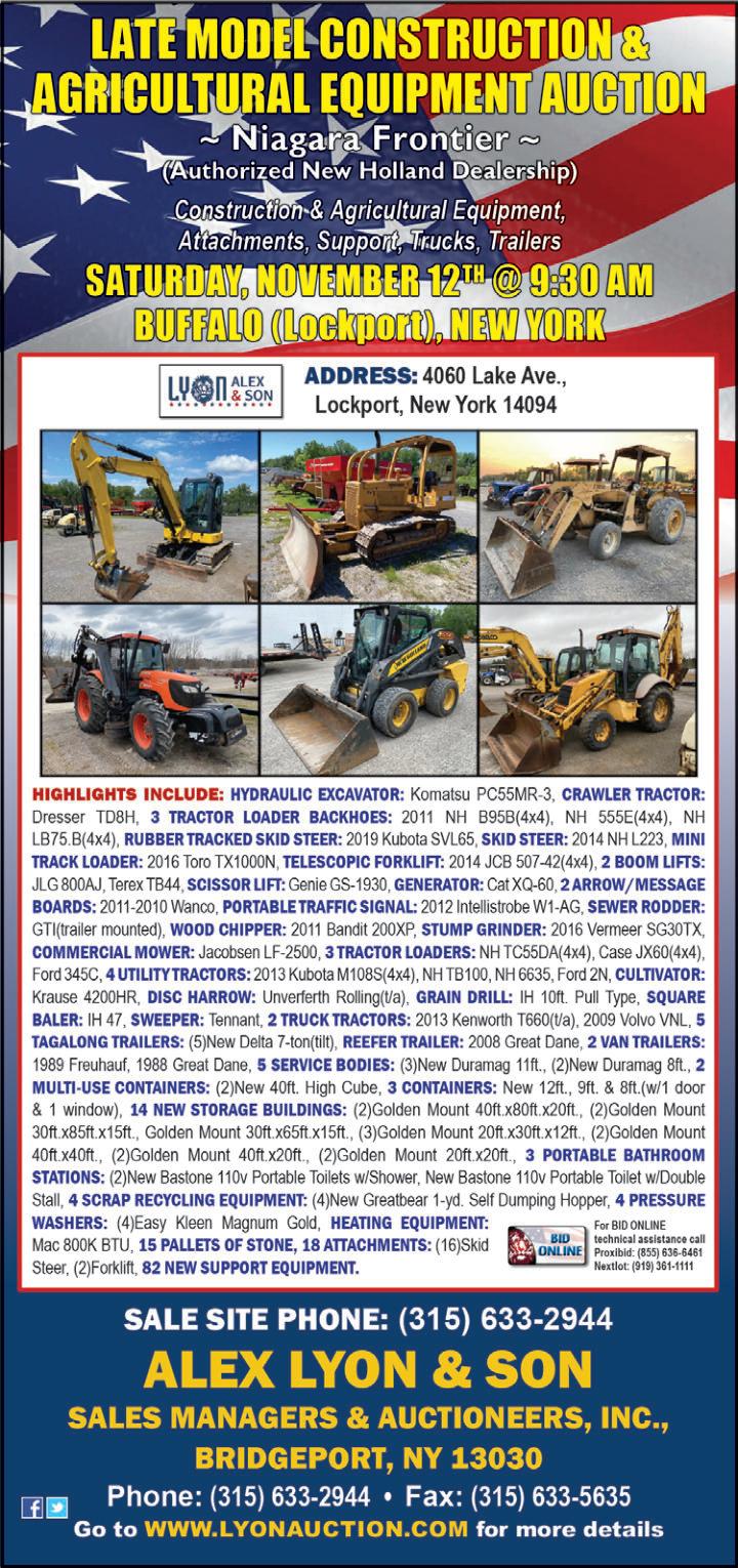 Page 4 • October 12, 2022 • www.constructionequipmentguide.com • CONSTRUCTION EQUIPMENT GUIDE ® Circulated Throughout ï New Hampshire ï Vermont ï Connecticut ï Rhode Island ï New York ï New Jersey ï Delaware ï Maine ï Pennsylvania ï Maryland/D.C. ï Virginia ï West Virginia ï Massachusetts Construction Equipment Guide Northeast Edition (ISSN 1058-787X) is published bi-weekly by Construction Equipment Guide Ltd. Advertising and Editorial Offices are located at 470 Maryland Dr., Ft. Washington, PA 19034. Toll Free 800/523-2200 or Fax 215/885-2910. Annual Subscription Rate $65.00. Call for Canadian and foreign rates. Periodicals postage paid at Ft. Washington, PA and at additional mailing offices. POSTMASTER: Send address changes to Construction Equipment Guide Northeast Edition, 470 Maryland Dr, Ft. Washington, PA 19034. Contents Copyrighted ©2022, by Construction Equipment Guide, which is a Registered Trademark, registered in the U.S. Patent Office. Registration number 0957323. All rights reserved, nothing may be reprinted or repro duced(including framing) in whole or part without written permission from the publisher. All editorial material, photographs, drawings, letters, and other material will be treated as unconditionally assigned for publication and copyright purposes and are subject to Construction Equipment Guide's unrestricted right to edit and comment editorially. Contributor articles do not necessarily reflect the policy or opinions of this publication. Call or write for advertising rates, publication schedule and media kit. The Construction Equipment Guide is not responsible for clerical or printer's errors, every care is taken to avoid mistakes. Photographs of equipment used in advertisements are not necessarily actual photographs of the specific machine. Similar photographs are used occasionally and every effort is taken to depict the actual equipment advertised. The right is reserved to reject any advertising.